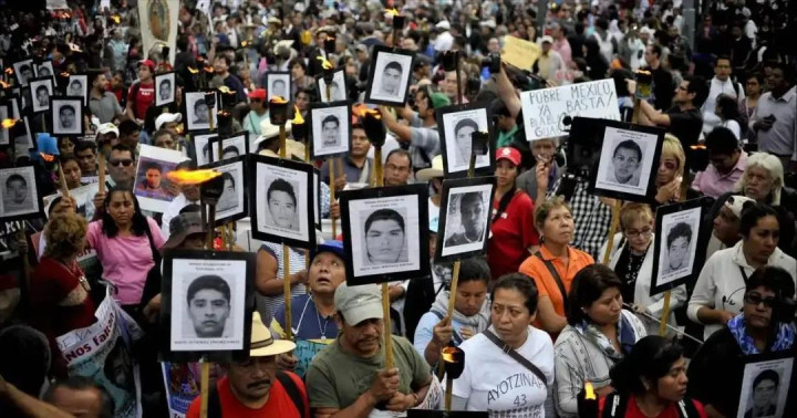 墨西哥人举着被贩毒集团杀害的无辜者游行抗议